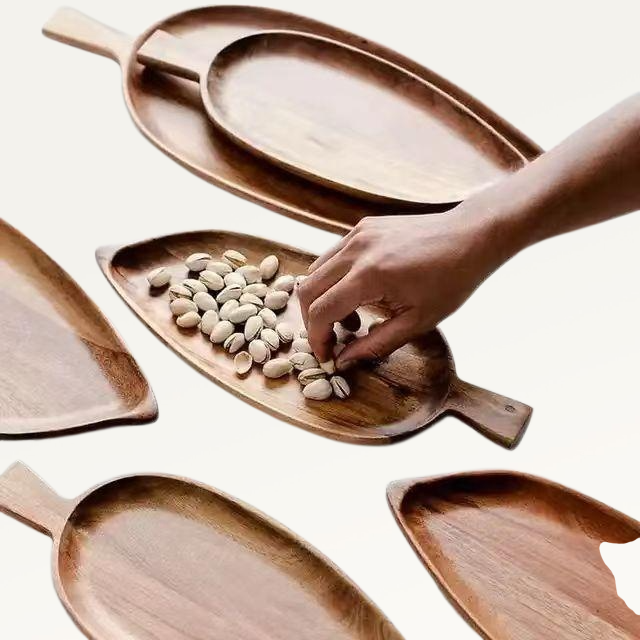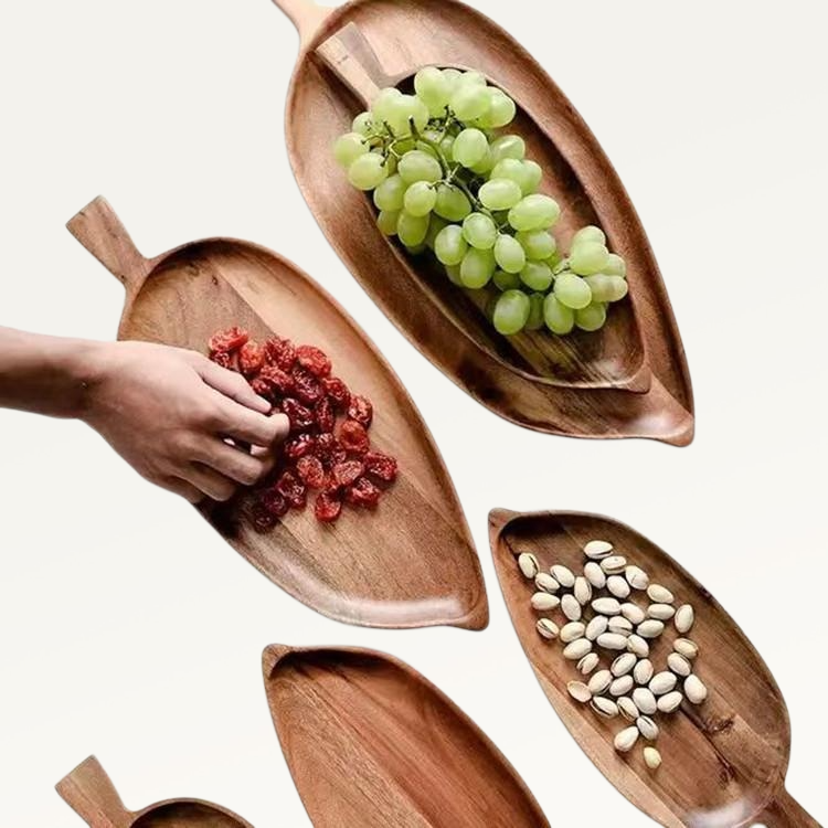 간식 플래터 나뭇잎 모양 접시 아카시아 치즈 스시 플레이트